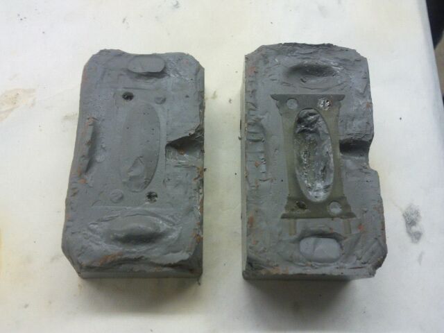 These are the two parts of the mold with the shapeways piece completely lodged in side 1.
